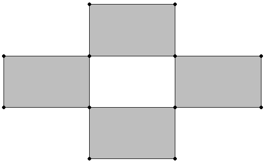In the following figure, the shaded areas represent the symmetric difference of the two rectangles.