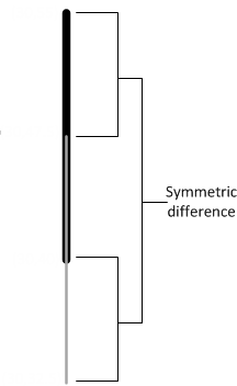 The set of all points of a pair of spatial objects where the objects do not intersect. This difference is spatially equivalent to the union of the two objects less their intersection. The symmetric difference contains the boundaries of the intersections.