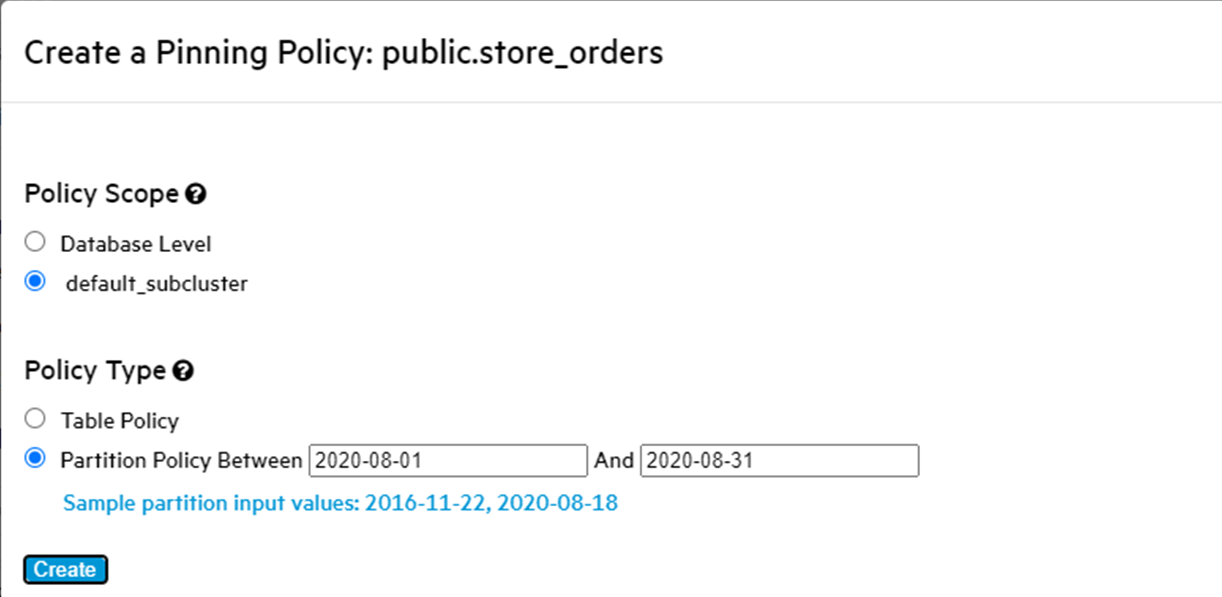 Create or remove pinning policies on individual tables and partitions by clicking on the desired action—Create Policy or Modify Policy.