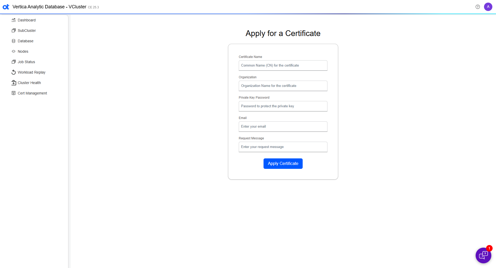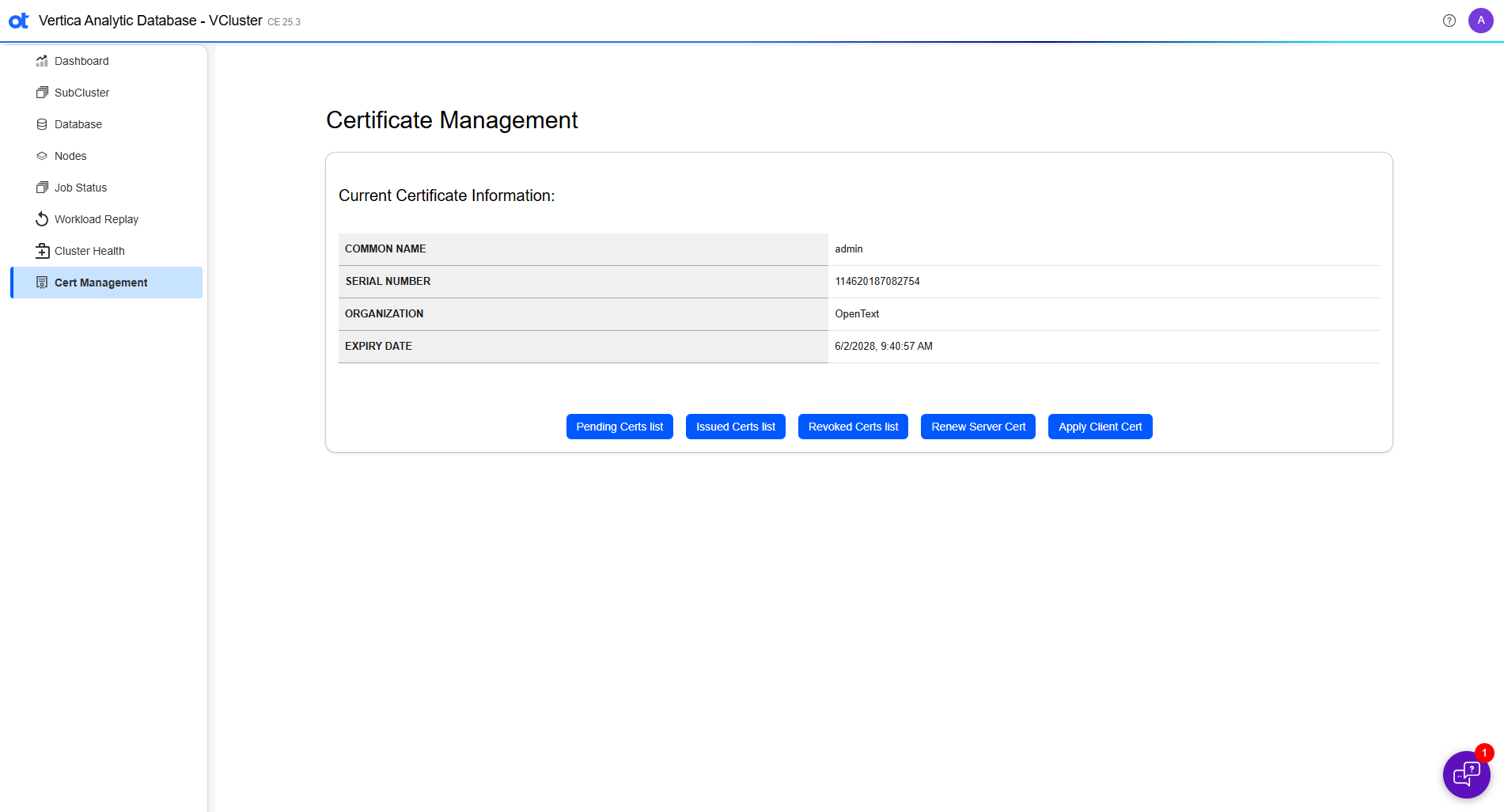 /opt/vertica/config/vcluster_serverand download theadmin.p12certificate to the local machine where you intend to access the VCluster Web UI.Note