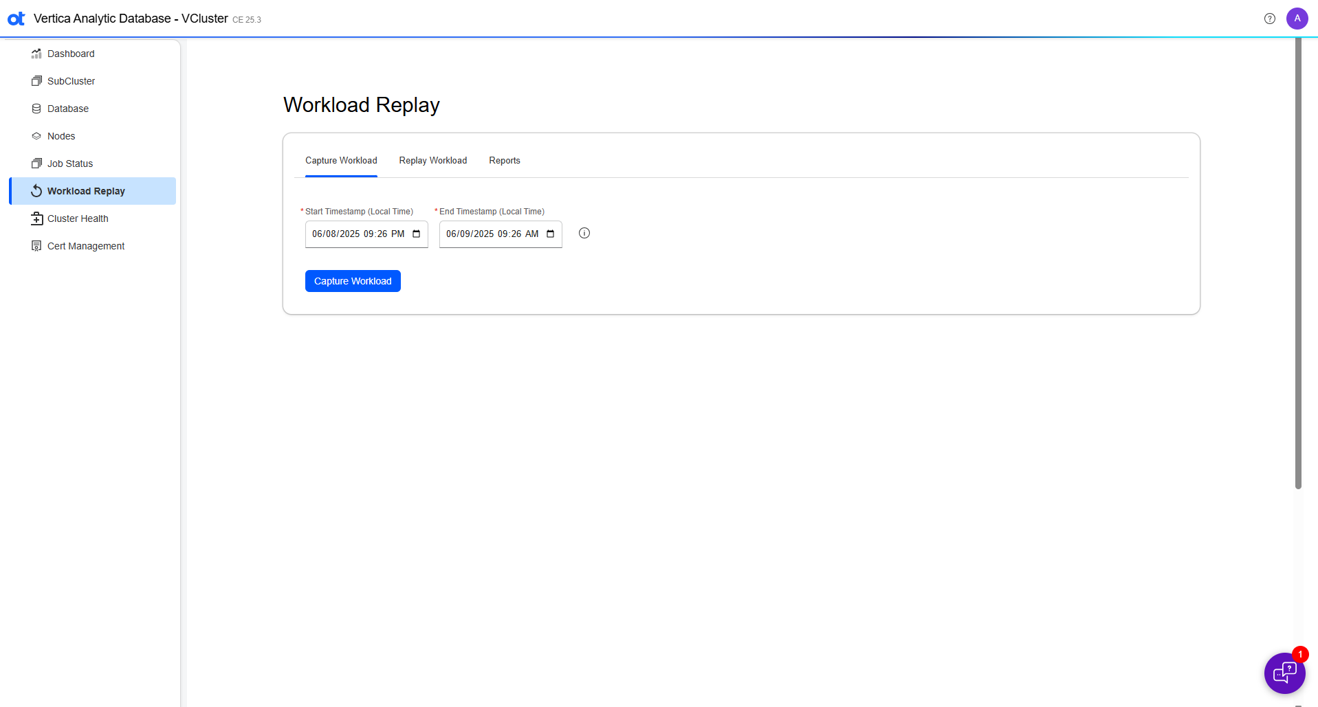 Capture is used to capture a query or multiple queries to see their performance. You specify a start and stop timestamp when the query/queries you want to capture were run. Then click Capture Worload to capture the query/queries. You are redirected to the Job Status > Workload Replay page to see the status of the capture. The job name will be capture-workload and once the status shows successful you can replay the workload. You need to note the file path for the capture job to run the replay.