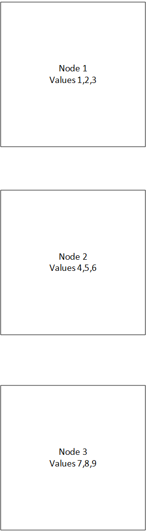A table column that contains nine values that are evenly distributed across the nodes. Schematically, the nodes look like the following figure: