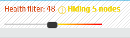 The Spread Retransmission Rate filter displays the number of nodes with high spread retransmission rates. When a node's retransmission rate is too high, it is not communicating properly with other nodes. Move the slider to adjust the retransmission rate filter.
