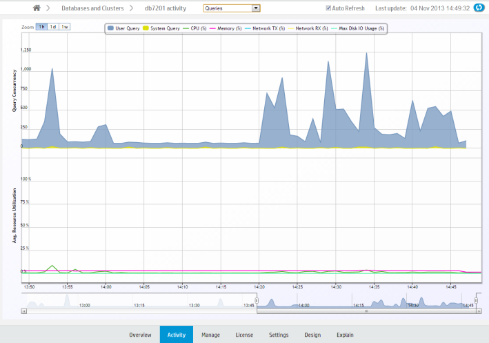Click a bar on the chart to view details about those queries the Query Monitoring activity chart.