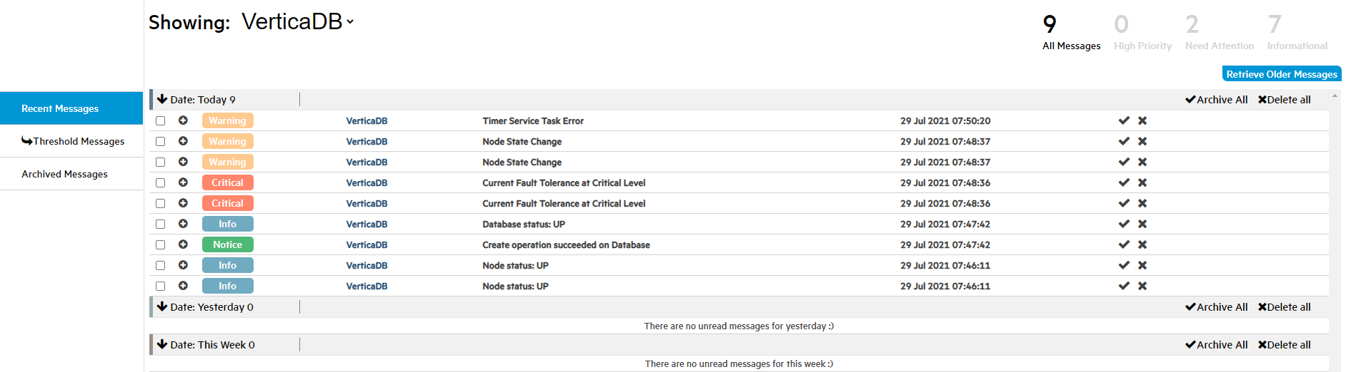 Unread Messages display the number of unread messages and alerts for the database. This count differs from the number of total messages across all your databases. Click the value to open the Message Center.