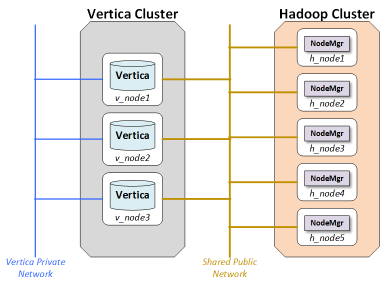 Normally, both Hadoop and the database use the entire node. Because this configuration uses shared nodes, you must address potential resource contention in your configuration on those nodes. See Configuring Hadoop for co-located clusters for more information. No changes are needed on Hadoop-only nodes.