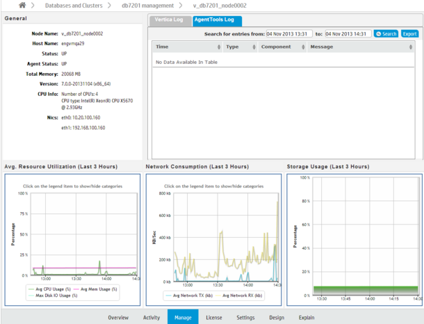 Management Console provides some, but not all, the functionality that Administration tools provides. Management Console also includes extended functionality not available in admintools. This additional functionality includes a graphical view of your database and detailed monitoring charts and graphs. See Administration Tools and Management Console for more information.