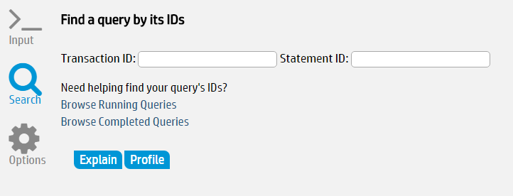 You can also enter the transaction ID and statement ID or browse running or completed queries in the Find a Query input window: