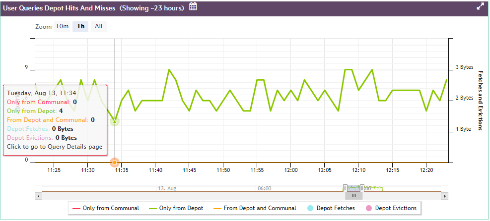 Color-coded graph lines show how many queries were accessing the depot or communal storage, or both, at any given time.