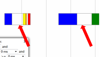Each bar, bound by a gray box, represents an individual query. Within a query, a different color represents each query phase. The chart does not show phases for queries with durations of less than 4 seconds. Blank spaces within a query represent waiting times, as in the image below.