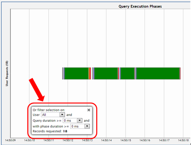 You can filter what the chart displays by selecting options for the user running the query, minimum query duration, and minimum phase duration.