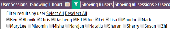 Change the session duration (how long a session took to run). Click the Filter icon (
